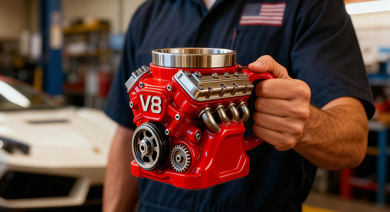 Unlike standard mugs, this one features a unique vintage engine-inspired design and a premium ceramic build. Its distinctive aesthetic appeals to car enthusiasts and anyone who appreciates standout drinkware.